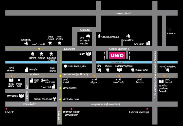 คอนโดพร้อมอยู่ ย่านรามคำแหง ฟรี! เฟอร์ฯ จองในงานรับ iPhone 13 ทุกยูนิต* "ยูนิโอ รามคำแหง-เสรีไทย" คอนโดพร้อมอยู่ ติดถนนใหญ่ พร้อมส่วนกลางครบครัน บนทำเลศักยภาพ ใกล้ MRT ศรีบูรพา, ติดถนนใหญ่ ใกล้นิด้า ใกล้ทางด่วน ถนนวงแหวน และมอเตอร์เวย์ พร้อมสิ่งอำนวยความสะดวกครบครัน