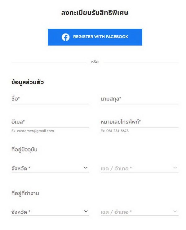 ลงทะเบียนรับสิทธิพิเศษ