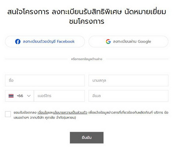 ลงทะเบียนรับสิทธิพิเศษ