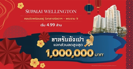 คอนโดย่านธุรกิจใจกลางรัชดาฯ แจกส่วนลดสูงสุด 1,000,000 บาท* "ศุภาลัย เวลลิงตัน" คอนโดพร้อมอยู่ ศุนย์กลางธุรกิจใจกลางรัชดา 2 ห้องนอน 76 ตร.ม. พร้อมที่จอดรถส่วนตัว สิ่งอำนวยความสะดวกครบครัน เดินทางสะดวก ใกล้รถไฟฟ้า MRT สถานีศูนย์วัฒนธรรมฯ ใกล้ทางด่วนศรีรัช