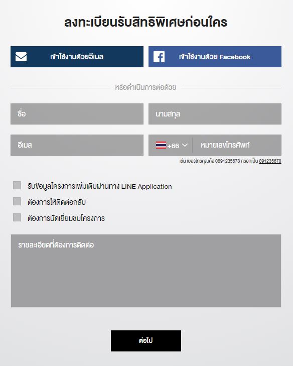 คลิกด้านล่างเพื่อลงทะเบียนรับสิทธิพิเศษ