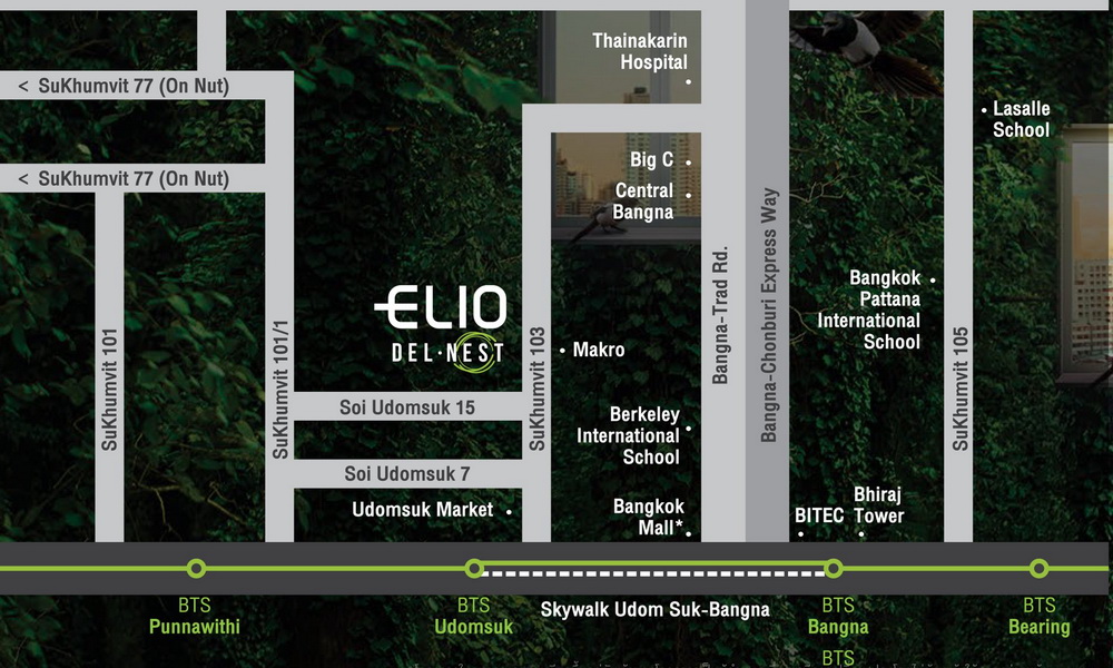 "เอลลิโอ เดล เนสท์" คอนโดพร้อมอยู่ พร้อมส่วนกลางขนาดใหญ่กว่า 3 ไร่ บนทำเลศักยภาพ ตั้งอยู่ในซอยอุดมสุข (สุขุมวิท 103) เดินทางสะดวก ใกล้รถไฟฟ้า BTS สถานีอุดมสุข เพียง 750 เมตร