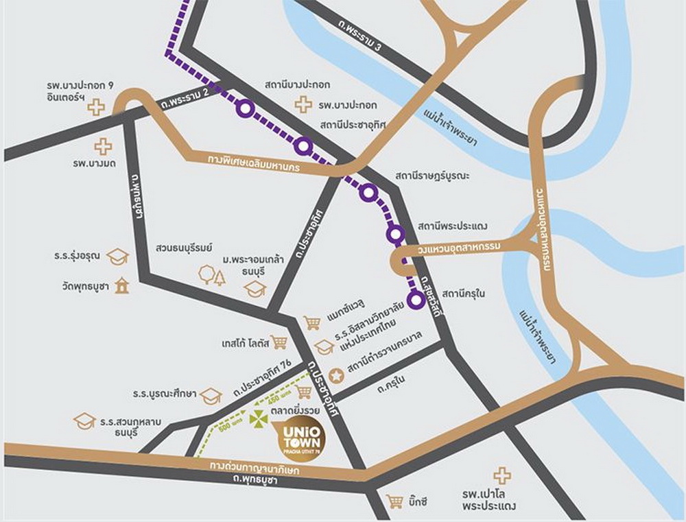 คลิกดูแผนที่โครงการ "ยูนิโอ ทาวน์ ประชาอุทิศ 76"