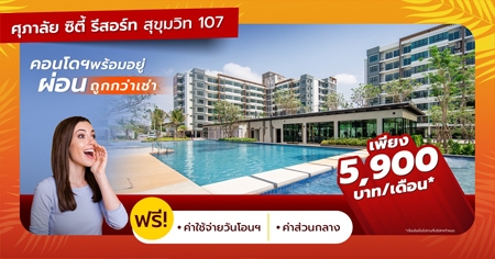 คอนโดพร้อมอยู่ใกล้ BTS แบริ่ง ผ่อนเพียง 5,900 บาท/เดือน* "ศุภาลัย ซิตี้ รีสอร์ท สุขุมวิท 107" คอนโดฯ พร้อมอยู่ สไตล์รีสอร์ท ใจกลางแบริ่ง บนทำเลศักยภาพ ใกล้ BTS สถานีแบริ่ง และทางด่วน เดินทางสะดวกสบาย พร้อมด้วยสิ่งอำนวยความสะดวกครบครัน