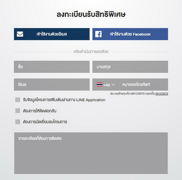 คลิกด้านล่างเพื่อลงทะเบียนรับสิทธิพิเศษ