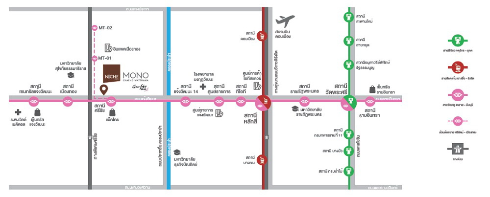 อีกขั้นของชีวิตกับมิติใหม่ในโลกดิจิทัล ก้าวสู่โลกแห่งอนาคตกับ “นิช โมโน แจ้งวัฒนะ” ให้คุณได้สัมผัสเทคโนโลยีดิจิทัลที่ออกแบบเพื่อการพักอาศัย เติมเต็มประสบการณ์การพักผ่อนให้เพลิดเพลิน และเต็มไปด้วยความสดชื่นมีชีวิตชีวา โดยโครงการตั้งอยู่ท่ามกลางศูนย์กลางคมนาคมที่ดีที่สุด ในย่านแจ้งวัฒนะ ไม่ว่าจะเป็นการเชื่อมต่อที่มุ่งสู่ถนนเส้นหลักต่างๆ รถไฟฟ้าสายสีชมพู และท่าอากาศยานดอนเมือง นอกจากนี้บริเวณใกล้เคียง โครงการยังเต็มไปด้วยสถานที่ที่น่าสนใจมากมาย