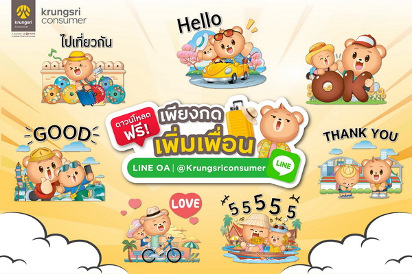 กรุงศรี คอนซูมเมอร์ผู้นำในธุรกิจบัตรเครดิตและสินเชื่อส่วนบุคคล ชวนเติมความสดใส รับการกลับมาของกิจกรรมท่องเที่ยวด้วยสติ๊กเกอร์ไลน์ชุดใหม่"Kris & Kira KSC Lets Travel" ด้วย 8 คาแรกเตอร์และข้อความสุดคิวท์จากแก๊งหมี Kris และ Kira ในธีมท่องเที่ยวทั่วไทย ใช้ส่งต่อความรู้สึก พร้อมเพิ่มสีสันในหน้าแชทให้สดใส ให้คุณแพลนทริปครั้งต่อไปกับเพื่อนๆ ได้สนุกยิ่งขึ้น