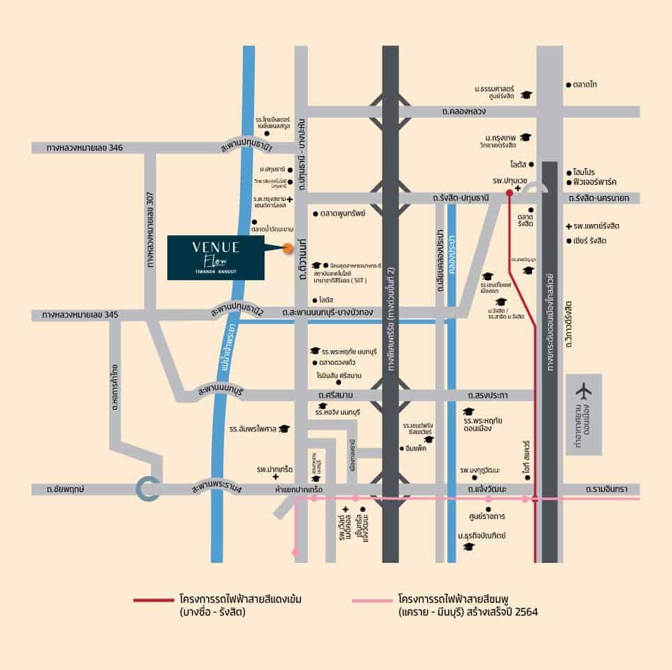 โอกาสสุดท้าย ก่อนปรับราคา รับเงินคืน 400,000 บาท* "เวนิว โฟลว์ ติวานนท์-รังสิต" บ้านหรู สไตล์โมเดิร์น Space กว้าง ตอบรับทุกไลฟ์สไตล์ 2 ครัวไทย พื้นที่พร้อมไม่ต้องต่อเติม พร้อมสวนส่วนกลางกว่า 5 ไร่ พร้อม Jogging Track เดินทางสะดวก เชื่อมต่อถนนหลายสาย แจ้งวัฒนะ, วิภาวดีรังสิต, คลองหลวง, และ 345 เพียง 5 นาที จากทางด่วนศรีรัชฯ