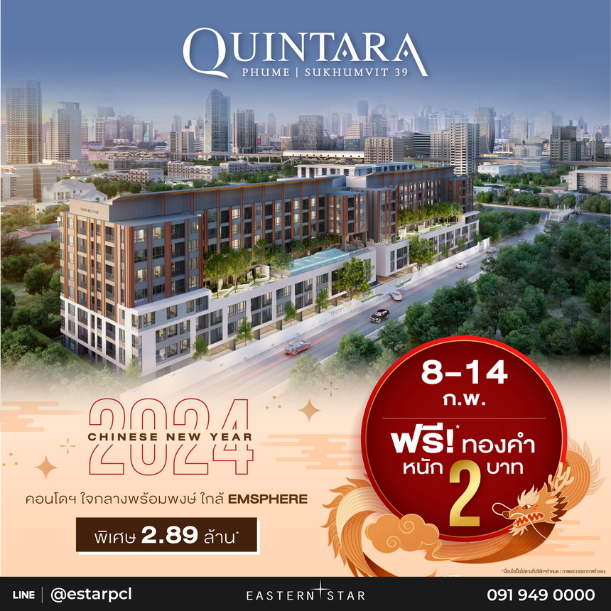 ไฮไลท์ของ ESTAR เดือนนี้ บริษัทจับโครงการคุณภาพ บนทำเลใจกลางเมือง ขยายเวลาโปรฯ นำเสนอลูกค้า ได้แก่ คอนโดใหม่ทำเลธุรกิจ ย่านพร้อมพงษ์ โครงการควินทารา ภูม สุขุมวิท 39 คอนโดห้องพร้อมอยู่ ให้ทุกท่าน “ใช้ชีวิตได้ดั่งใจ ที่ใจกลางพร้อมพงษ์”