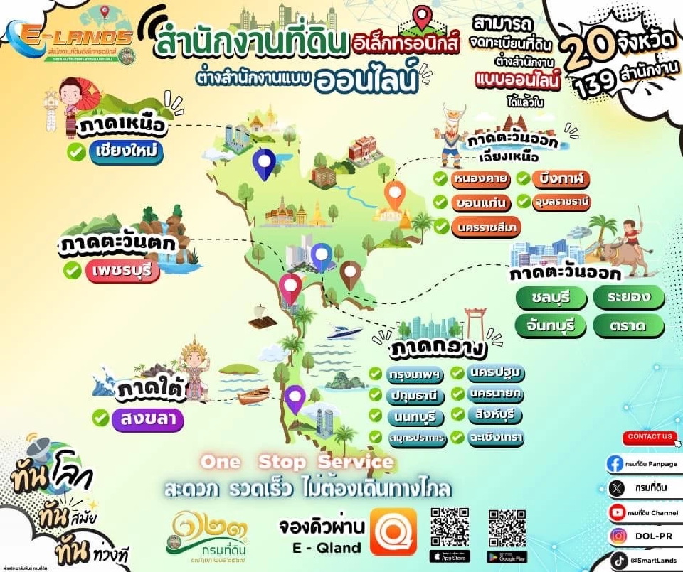 กรมที่ดิน ได้แจ้งข่าวดี ประชาชนสามารถ โอน ซื้อ ขายที่ดินออนไลน์ ได้แล้ว 20 จังหวัด 139 สำนักงานทั่วประเทศ เพราะล่าสุด วันนี้ 3 เมษายน 2567 นายพรพจน์ เพ็ญพาส อธิบดีกรมที่ดิน ได้ทำพิธีเปิดสำนักงานที่ดินอิเล็กทรอนิกส์ จดทะเบียนต่างสำนักงานแบบออนไลน์เพิ่มเติมในพื้นที่ดังนี้