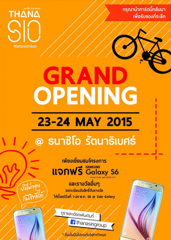ร่วมสนุกกับกิจกรรม "THANASIO GRAND OPENING" ธนาซิโอ รัตนาธิเบศร์ ทาวน์โฮม 4 ห้องนอน พร้อมลงทะเบียนรับสิทธิ์จับรางวัลฟรี! Samsung Galaxy S6