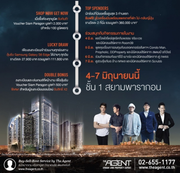 พร้อมกันนี้ยังมีกิจกรรมให้ร่วมสนุกลุ้นรับของรางวัลอย่าง Samsung Galaxy S6 Edge และบัตรกำนัล Siam Paragon มูลค่า 500 บาทสำหรับผู้ทะเบียนร่วมงานทุกวัน! และพิเศษสุด!รับบัตรกำนัล Siam Paragon มูลค่า 2,000 บาทสำหรับทุกยูนิต (จำกัด 100 ยูนิตแรก) และ รางวัลใหญ่สำหรับผู้ที่ทำยอดซื้อสูงสุด 3 ลำดับแรกในงานคือ ตั๋วเครื่องบินไปกลับประเทศญี่ปุ่นพร้อมแพคเกจที่พักรางวัลละ 2 ที่นั่ง