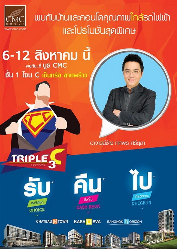 CMC Groupจัดโปรโมชั่นกลางปีครั้งยิ่งใหญ่ด้วยแคมเปญใหม่สุดพิเศษกับ "โปรฯ เลือกได้ Triple C ยกกำลัง3 รับ...คืน...ไป" เพื่อเป็นการตอบแทนลูกค้าที่ไว้วางใจเลือกที่อยู่อาศัยกับ CMC Groupเสมอมา พร้อมนำคอนโดไลฟ์สไตล์คนรุ่นใหม่บนทำเลศักยภาพที่เชื่อมต่อทุกการเดินทาง ใกล้สถานีรถไฟฟ้าทางด่วนห้างสรรพสินค้าชั้นนำ และสถานที่สำคัญต่างๆ มากมาย ที่พร้อมยื่นข้อเสนอดีๆ