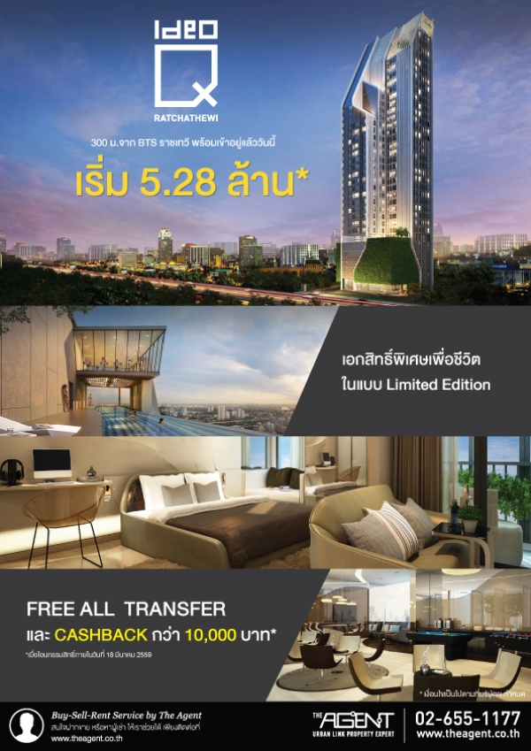 Living on The Exclusivity "ดีไซน์อันโดดเด่นที่ออกแบบมาเพื่อตอบสนองทุกความต้องการของการอยู่อาศัย" IDEO Q RATCHATHEWI คอนโดพร้อมอยู่ ใกล้ศูนย์การค้าชั้นนำ เพียง 620 เมตรจากแพลทตินั่มมอลล์และพันธุ์ทิพย์พลาซ่า, 650 เมตร จากสยามพารากอนและ 900 เมตร จากเซ็นทรัลเวิลด์ สะดวกกับการเดินทาง เพียง 300 เมตรจาก BTS ราชเทวีและ 700 เมตรจาก Airport Link พญาไท และในอนาคตกับรถไฟฟ้าสายสีส้มหน้าโครงการ*