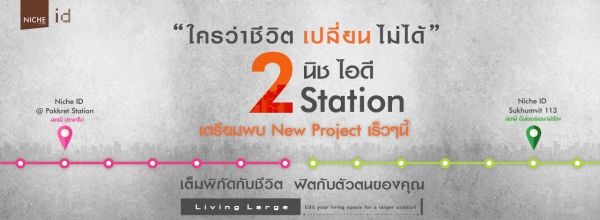 "ใครว่าชีวิต เปลี่ยนไม่ได้" เสนา ดีเวลลอปเม้นท์ เตรียมเปิดตัวโครงการใหม่ภายใต้คอนเซ็ปต์ "2 นิช ไอดี Station" 2 โครงการคอนโดใหม่ ใกล้แนวรถไฟฟ้าสายสีชมพู และสายสีเขียว Niche ID @ Pakkret Station Niche ID Sukhumvit 113 "เต็มพิกัดกับชีวิต ฟิตกับตัวตนของคุณ" เร็วๆนี้
