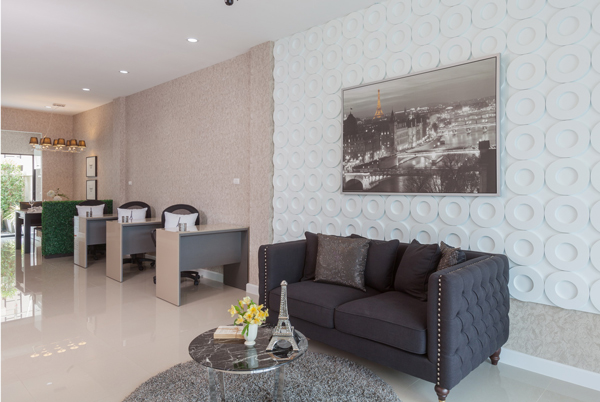 - รุ่น E เป็นโฮมออฟฟิศ 3 ชั้น บนเนื้อที่ 30 ตารางวา พื้นที่ใช้สอย ประมาณ 180 ตรม.