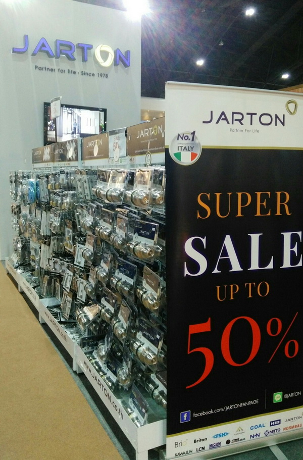 ช็อปกันให้จุใจ สำหรับคนรักบ้าน พบกับบูธ "JARTON" ในงาน บ้านและสวนแฟร์ วันที่ 22 - 30 ก.ค.2560 ที่ไบเทคบางนา Hall 100-105 บูธ G57-58,G80-81 สินค้าคุณภาพในราคาที่จับต้องได้ มาพร้อมกับโปรฯลด 50% พิเศษสำหรับลูกค้าที่ add Line ลดเพิ่มอีก 5% สินค้ามากมายราคาเริ่มต้นเพียง 45บาท อาทิเช่น กลอนประตู,ลูกบิด,มือจับ,กุญแจ,บานพับ รวมถึงสิ่งอำนวยความสะดวกครบครัน และไฮไลท์อยู่ที่ตัวล็อคระบบติจิตอล