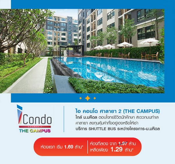 ใกล้ ม.มหิดล ตอบโจทย์ชีวิตนักศึกษาบนทำเลศาลายา ห้องแรกเริ่มที่ 1.69 ล้าน ห้องถัดไปเหลือเพียง 1.29 ล้านเท่านั้น! (จากราคา 1.97 ล้าน)
