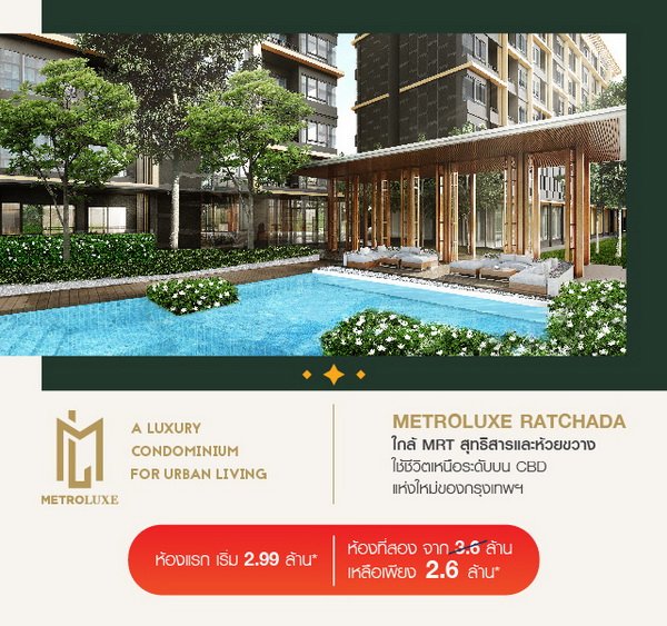 ใกล้ MRT สุทธิสารและห้วยขวาง ใช้ชีวิตเหนือระดับบน CBD แห่งใหม่ของกรุงเทพฯ ห้องแรกเริ่มที่ 2.99 ล้านห้องถัดไปเหลือเพียง 2.6 ล้านเท่านั้น! (จากราคา 3.6 ล้าน)