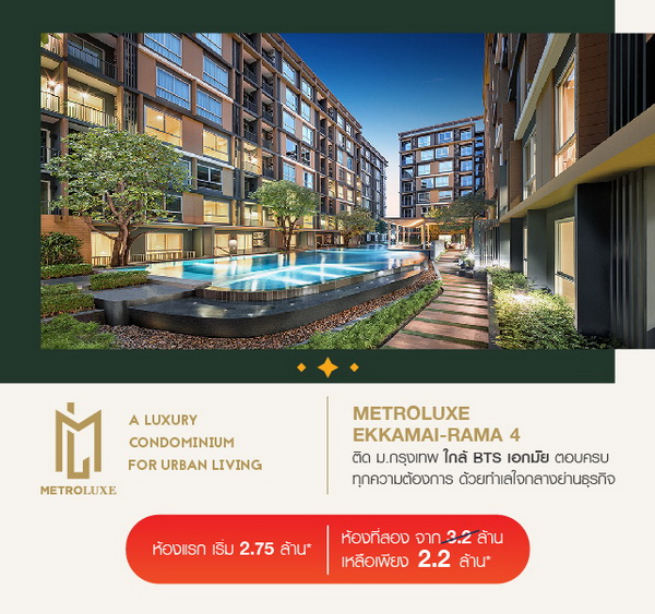 ติด ม.กรุงเทพ ใกล้ BTS เอกมัย ตอบครบทุกความต้องการ ด้วยทำเลใจกลางย่านธุรกิจ ห้องแรกเริ่มที่ 2.75 ล้านห้องถัดไปเหลือเพียง 2.2 ล้านเท่านั้น! (จากราคา 3.2 ล้าน)