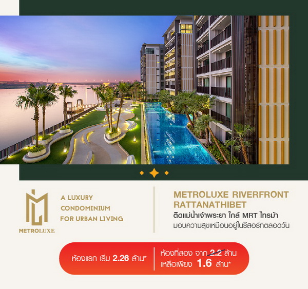 มอบความสุขเหมือนอยู่ในรีสอร์ทตลอดวัน ติด แม่น้ำเจ้าพระยา ใกล้ BTS ไทรม้า ห้องแรกเริ่มที่ 2.26 ล้านห้องถัดไปเหลือเพียง 1.6 ล้านเท่านั้น! (จากราคา 2.2 ล้าน)