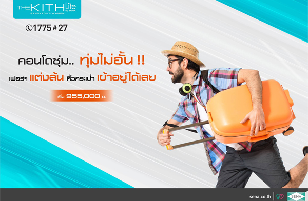 เสนาดีเวลลอปเมนท์ จัดโปรโมชั่น "คอนโดซุ่ม.. ทุ่มไม่อั้น" "เดอะคิทท์ ไลท์ บางกะดี ติวานนท์" คอนโดติดถนนใหญ่ ใกล้รังสิต ปทุมธานี เดินทางสะดวกสบาย พร้อมสิ่งอำนวยความสะดวกรอบด้าน พิเศษ ! โปรโมชั่น จองแค่ 2,000 บาท พร้อมโอนทันที เริ่มต้น 955,000 บาท* พร้อมโปรโมชั่นพิเศษ ลงทะเบียนจองสิทธิ์รับทอง