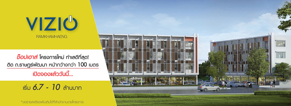 โฮมเพลส จัดโปรโมชั่น ช็อปเฮาส์และโฮมออฟฟิศ ติดถนนร่มเกล้า ใกล้สุวรรณภูมิ พบกับ โครงการ VIZIO ร่มเกล้า - สุวรรณภูมิ อาคารพาณิชย์ และ โฮมออฟฟิศ บนถนนร่มเกล้า การเดินทางสะดวก เพียง 5 นาทีจากสนามบินสุวรรณภูมิ