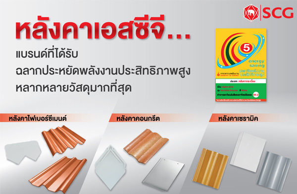 จากกรมพัฒนาพลังงานทดแทนและอนุรักษ์พลังงาน กระทรวงพลังงาน ที่มอบให้แก่ผลิตภัณฑ์ประสิทธิภาพสูงที่สามารถช่วยลดค่าใช้จ่าย ช่วยชาติประหยัดพลังงาน โดย “เอสซีจี” เป็นผู้ผลิตหลังคาที่ได้ฉลากรับรองมากที่สุดถึง 16 รุ่น ครอบคลุม 3 วัสดุหลัก