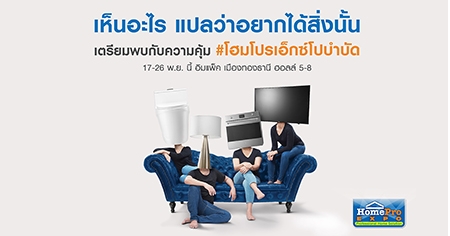 "โฮมโปร" ผู้นำธุรกิจศูนย์รวมวัสดุและอุปกรณ์ตกแต่งบ้านครบวงจร จัดมหกรรมตัวจริงเรื่องบ้านคุ้มทุกชิ้น แบบครบวงจรที่สุด ที่คุณพลาดไม่ได้ ขนขบวนสินค้าเพื่อบ้านจากผู้ผลิตชั้นนำกว่า 300 บริษัท มาลดกระหน่ำสูงสุด 80% ให้ช้อปจุใจ 10 วัน ไม่ว่าจะเป็นของขวัญ ของฝากสำหรับทุกเพศทุกวัย หรือสินค้าประหยัดพลังงาน เบอร์ 5 พร้อมรับของสมนาคุณสุดคุ้ม และรับสิทธิพิเศษอีกมากมายจากสถาบันการเงิน บัตรเครดิตชั้นนำที่ร่วมรายการ อีกทั้งยังได้ลุ้นรับของกำนัลสุดพิเศษที่ "โฮมโปร" จัดมาให้คุ้มแบบถึงใจ งานนี้คนรักบ้านห้ามพลาด!!