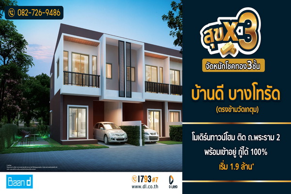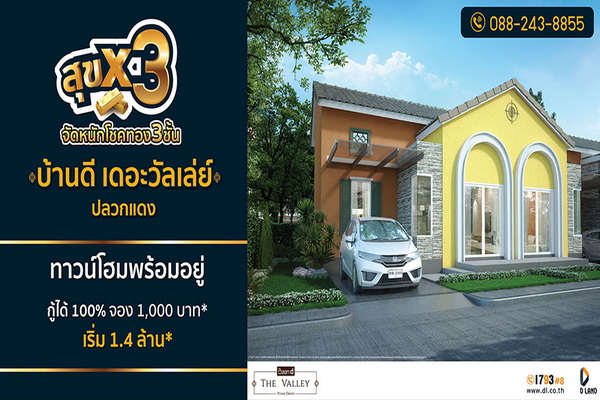 จัดหนัก แจกใหญ่ รับตรุษจีนกันเลยทีเดียว สำหรับ “บริษัท ดี-แลนด์ กรุ๊ป จำกัด” ผู้พัฒนาอสังหาริมทรัพย์ชั้นนำโซนกรุงเทพใต้, พระราม 2, สมุทรสาคร และโซนภาคตะวันออก ที่ขอจัดโปรโมชั่นต้อนรับลูกบ้านใหม่ กับแคมเปญ “สุข X 3” จัดหนักโชคทอง 3 ชั้น