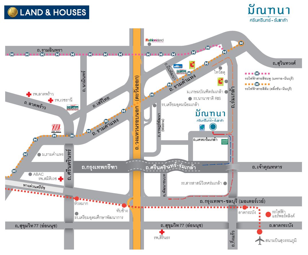 บ้านซีรีส์ใหม่ ทำเลดี พร้อมข้อเสนอสุดพิเศษ จาก แลนด์ แอนด์ เฮ้าส์ "มัณฑนา ศรีนครินทร์-ร่มเกล้า" โครงการใหม่ ที่มาพร้อมห้องนอนล่างทุกแบบบ้าน พร้อมนวัตกรรม AirPlus บ้านหายใจได้ บนถนนตัดใหม่ศรีนครินทร์-ร่มเกล้า ใกล้ Airport Link รถไฟฟ้าสายสีส้ม และสายสีชมพูในอนาคต พื้นที่โครงการ 75.9 ไร่ จำนวนแปลงขาย 304 แปลง บ้านเดี่ยว มีแบบบ้านให้เลือกทั้งหมด 5 แบบ พื้นที่ใช้สอยตั้งแต่ 142 ตร.ม. บนขนาดที่ดินตั้งแต่ 51 ตารางวา ขึ้นไป