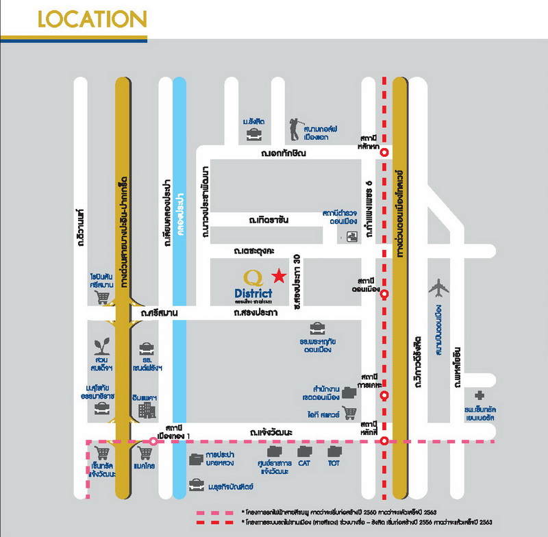 อีกทั้งตัวเลือกการเดินทางจากระบบคมนาคมสาธารณะ ใกล้โครงการ ในอนาคตรถไฟฟ้าสายสีแดง (บางซื่อ-รังสิต) สถานีดอนเมือง เพียง 4.2 กม. และโครงการรถไฟฟ้า ในอนาคตสายสีชมพู (บางแค-มีนบุรี)ด้วย รายล้อมด้วยสถานที่สำคัญมากมาย ห้างสรรพสินค้า โรงเรียน มหาวิทยาลัย โรงพยาบาล ฯลฯ อาทิ โรบินสันศรีสมาน เซ็นทรัลแจ้งวัฒนะ โรงเรียนพระหฤทัยดอนเมือง โรงเรียนเซนต์ฟรังซีสเซเวียร์ มหาวิทยาลัยรังสิต มหาวิยาลัยธุรกิจบัณฑิต โรงพยาบาลมงกุฎวัฒนะ โรงพยาบาลเซ็นทรัลเยนเนอรัล ฯลฯ