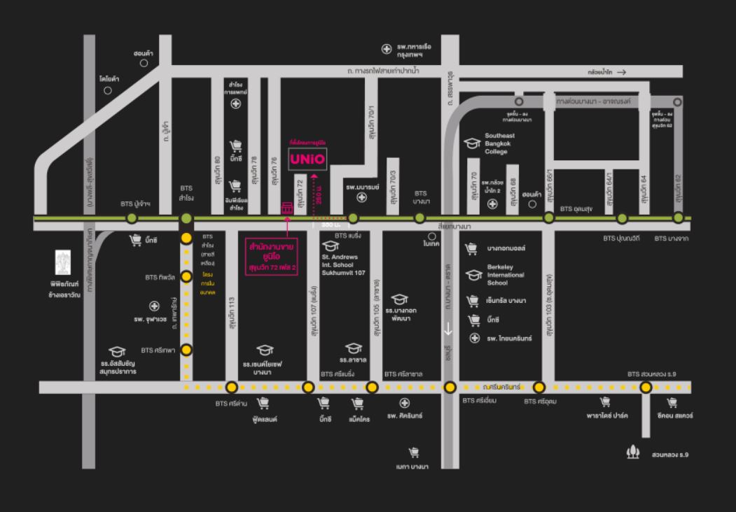 "ยูนิโอ สุขุมวิท 72 เฟส 2" คอนโดใจกลางสุขุมวิท เพียง 600 เมตร จาก บีทีเอส แบริ่ง* จุดเริ่มต้นของการใช้ชีวิตที่ให้มากกว่า Economy Condo ทั่วไป สะดวกสบายคุ้มค่าคุ้มราคาตอบโจทย์ทุกไลฟ์สไตล์ให้คุณใช้ชีวิตที่มากกว่า ใกล้ห้างเซ็นทรัล บางนา, เมกา บางนา โรงพยาบาลนครินทร์, โรงพยาบาลกล้วยน้ำไท2, โรงพยาบาลศิครินทร์, โรงเรียนนานาชาติเบิร์คลีย์, โรงเรียนนานาชาติบางกอกพัฒนา, โรงเรียนลาซาล, โรงเรียนอัสสัมชัญ สมุทรปราการ, โรงเรียนเซนต์โยเซฟบางนาคุ้มทั้งอยู่เอง คุ้มทั้งการลงทุน พร้อมรับเงื่อนไขการผ่อนชำระง่ายๆ สบายๆ ให้คุณซื้อถูกกว่าเช่า มีเงินออมเพิ่มขึ้น ลงทุนได้มากขึ้นด้วยราคาที่คุ้มค่า เหมาะกับคนทีใช้เงินอย่างชาญฉลาด