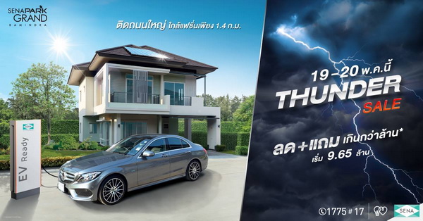 เตรียมพบกับกันในงาน Thunder sale 19 -20 พ.ค.นี้ พร้อมเปิดให้ชมบ้านตัวอย่าง และรับสิทธิพิเศษมากมาย เฉพาะวันงานฟรี! Solar + EV Charger / ค่าโอนกรรมสิทธิ์ สำหรับลูกค้าที่สนใจสามารถลงทะเบียน หรือสอบถามรายละเอียดเพิ่มเติม โทร. 1775 กด 17