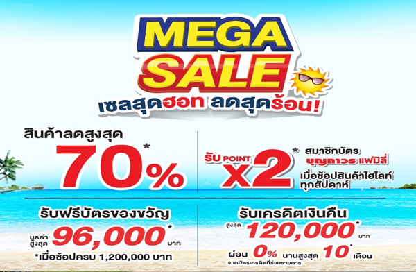 บุญถาวรจัดโปรโมชั่น สุดร้อนแรง MEGA SALE สูงสุดถึง 70 %