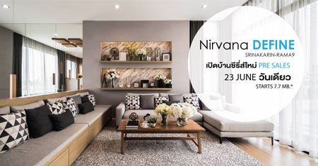 เชิญร่วมงาน PRE SALES ทาวน์โฮมที่เป็นมากกว่าบ้านเดี่ยว 23 มิ.ย. นี้ Nirvana Define ศรีนครินทร์-พระราม9 ทาวน์โฮมโครงการใหม่ บนทำเลศักยภาพที่ดีที่สุด ติดถนนกรุงเทพกรีฑาตัดใหม่ เชื่อมต่อถนนสายหลัก 7 สายโซนกรุงเทพฯ-ตะวันออก เพียง 10 นาทีถึงทางด่วน 15 นาทีถึงใจกลางพระราม9