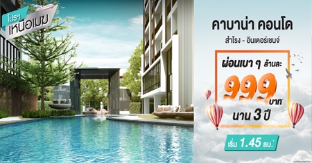 The Cabana Condo" คอนโดโมเดิร์นรีสอร์ท งานดี ทำเลเยี่ยม โดดเด่นกับที่พักอาศัยสไตล์ โมเดิร์นรีสอร์ท พร้อมพื้นที่ส่วนกลาง รวมกว่า 2 ไร่ กับคอนโด Low Rise 8 ชั้น 3 อาคาร พร้อมให้ความสุขแก่ชีวิตมากขึ้นทุกๆ วัน และพักผ่อนให้เต็มอิ่ม เหมือนอยู่ท่ามกลางธรรมชาติ ส่วนกลาง 2 ไร่ สระว่ายน้ำ ฟิตเนส พื้นที่สีเขียว 2 นาที ถึง BTS สำโรง โปรฯเหนือเมฆ ผ่อนล้านละ 999 บาทต่อเดือน เป็นเวลา 3 ปี ก่อนสิ้น มิ.ย. นี้เท่านั้น ราคาเริ่ม 1.45 ล้าน