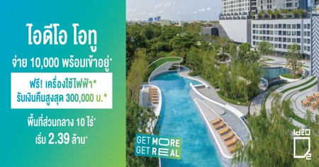 ไอดีโอ โอทู ชวนสัมผัสพื้นที่ส่วนกลางที่ทำให้คุณมีความสุขได้ในทุกๆ วัน ท่ามกลางธรรมชาติ ให้คุณได้พักผ่อนหย่อนใจ และทำงานท่ามกลางความร่มรื่นของธรรมชาติ ใกล้ BTS แวดล้อมด้วยสิ่งอำนวยความสะดวกมากมาย จ่าย 10,000 บ. พร้อมเข้าอยู่* ฟรี! เครื่องใช้ไฟฟ้า* รับเงินคืนสูงสุด 300,000 บ.* เริ่มเพียง 2.39 ล้าน* พื้นที่ส่วนกลาง 10 ไร่* ชมโครงการจริงได้แล้ววันนี้