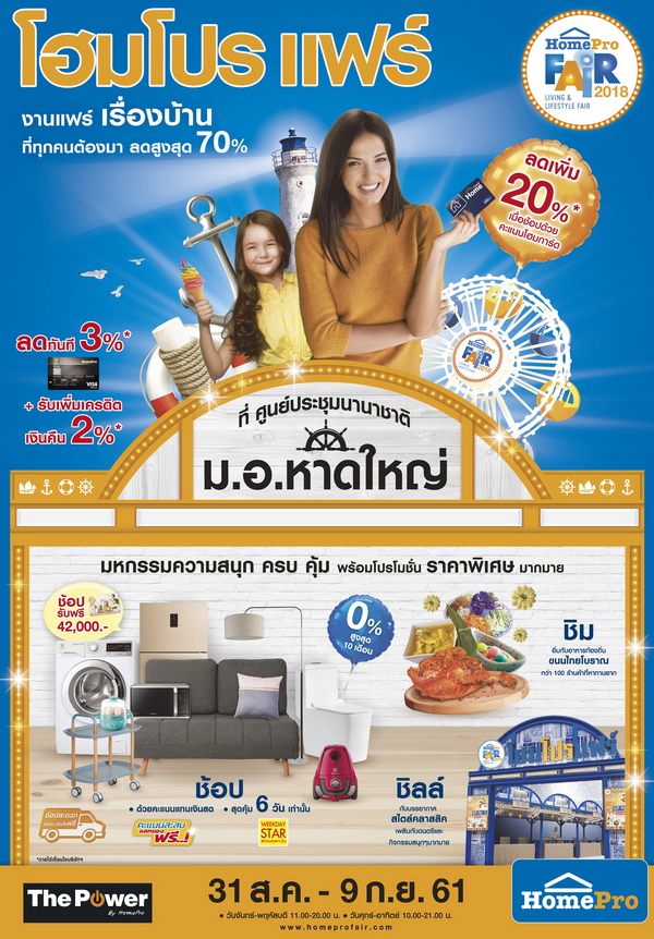 โฮมโปรชวน ร่องใต้ไปกับงาน "โฮมโปรแฟร์" ช้อป ชิม ชิลล์ 31 ส.ต. - 9 ก.ย.นี้ งานแฟร์เรื่องบ้านกำลังจะกลับมา เตรียมพบกับ มหกรรมความสนุก ครบ คุ้ม เรื่องบ้าน "โฮมโปรแฟร์" หาดใหญ่ ช้อป ชิมชิลล์ช้อปคุ้ม สินค้าเรื่องบ้าน ลดสูงสุดกว่า 70% พร้อมโปรโมชั่นพิเศษ ผ่อน 0% นาน 10 เดือนกับบัตรเครดิตชั้นนำ ระหว่างวันที่ 31 ส.ค. 9 ก.ย. 61 ณ ศูนย์ประชุมนานาชาติ ม.อ. หาดใหญ่