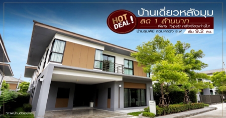บ้านเดียวแปลงพิเศษหลังมุม ลด 1 ล้านบาท TypeD หลังเดียวเท่านั้น บ้านลุมพินี สวนหลวง ร.๙ บ้านลุมพินี " สวนหลวง ร.9" บ้านลุมพินี บ้านน่าอยู่ บ้านเดี่ยวสองชั้นพร้อมอยู่ Type D 4 ห้องนอน 4 ห้องน้ำ จอดรถได้ 2 คัน พื้นที่ใช้สอย 228 ตร.ม. ส่วนกลางครบ คลับเฮาส์พร้อมฟิตเนส สระว่ายน้ำระบบน้ำเกลือ ระบบรักษาความปลอดภัย 24 ชม. ระบบ Double Gate Security"สัมผัสวิธีชีวิตที่เรียบง่าย ท่ามกลางธรรมชาติที่โอบล้อม คลับเฮาส์พร้อมฟิตเนส และสระว่ายน้ำระบบน้ำเกลือ สวนส่วนกลาง"