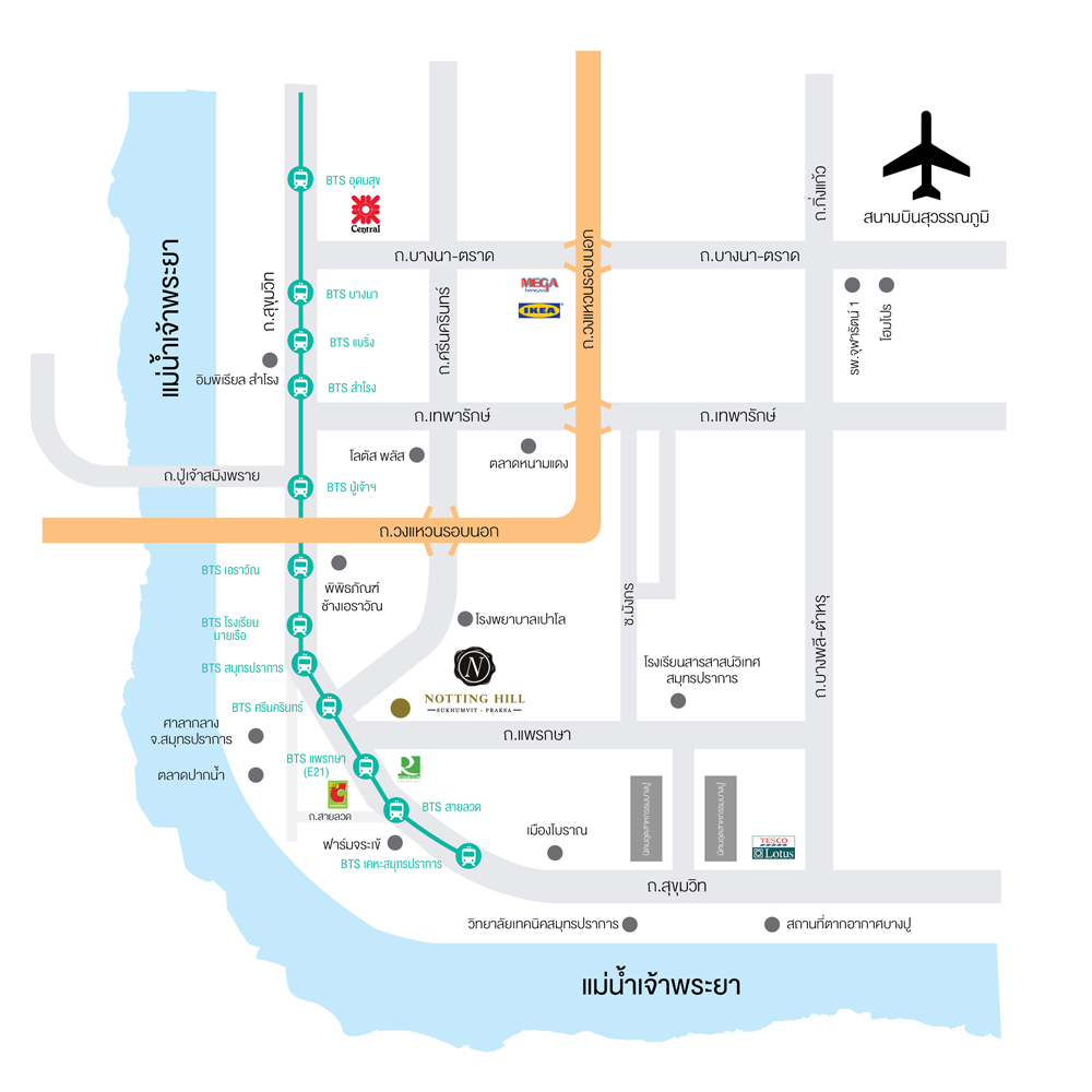 แผนที่โครงการ "นอตติ้ง ฮิลล์ สุขุมวิท - แพรกษา"