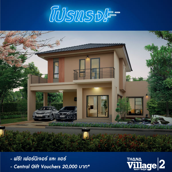 1.ธนาวิลเลจ2 พระราม 5 – บางใหญ่ โครงการบ้านเดี่ยวสไตล์โมเดิร์นทรอปปิคอล 4 ห้องนอน สงบ ส่วนตัว เพียง 86 ครอบครัวใกล้เซ็นทรัลเวสเกต และรถไฟฟ้าสายสีม่วงรับโปรโมชั่น ปิดโครงการบ้านหน้าสวนส่วนกลาง