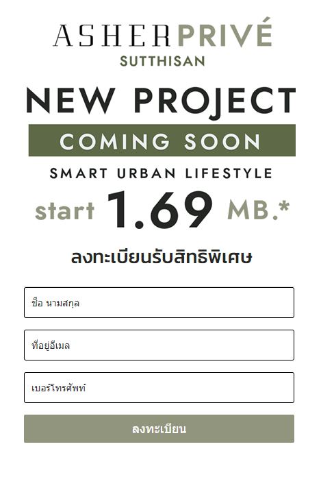 เตรียมพบกับคอนโดใหม่ใกล้รถไฟฟ้าเพียง 800 ม. จาก MRTสุทธิสาร ให้คุณใช้ชีวิต "SMART URBAN LIFESTYLE" ใจกลางรัชดา เริ่ม 1.69 ล.บ.* ใครสนใจรีบเข้าไปลงทะเบียนในเว็บไซต์ พร้อมรับส่วนลด+ของแถมมูลค่ากว่า 100,000 บ.