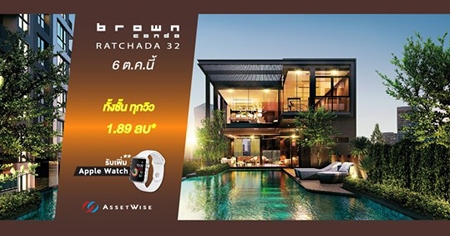 Brown Condo รัชดา 32 ออกแบบให้ทุกกิจกรรมวันหยุดของคุณไม่มีสะดุด ด้วยส่วนกลางครบครันทั้ง Private club house, Jogging track, Swimming pool, Fitness และ Sky terrace ให้ทุกวันคือวันพักผ่อนที่แท้จริงพร้อมรับเพิ่ม Apple Watch* โอกาสเดียว 6 ต.ค.นี้ เริ่ม 1.89 ลบ.*