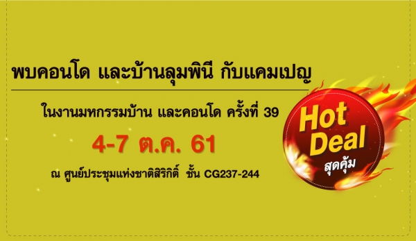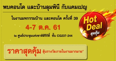 แอล.พี.เอ็น. จัดโปรโมชั่นงานมหกรรมบ้าน และคอนโด ครั้งที่ 39 เตรียมพบ แคมเปญ Hot deal พบราคาสุดคุ้ม ทั้งคอนโด และบ้าน จากลุมพินี พร้อมลุ้นรับของรางวัลมากมายภายในงาน* พบกัน วันที่ 4 - 7 ตุลาคม 2561 นี้ ณ ศูนย์ประชุมแห่งชาติสิริกิติ์ ชั้น CG237-244
