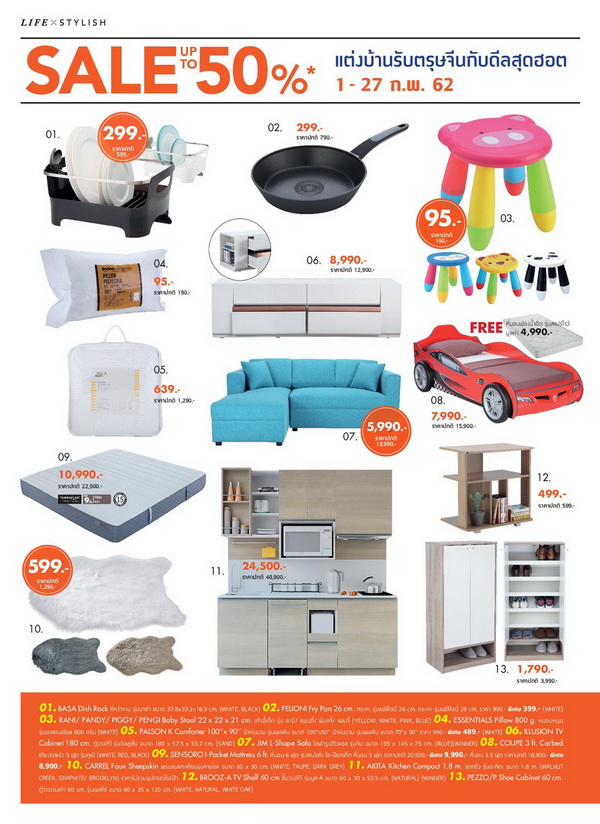 - อั่งเปาต่อที่ 1 รับฟรี!! คูปองส่วนลด 500.- เมื่อช้อปของแต่งบ้านครบ 500.- (เฉพาะ100 ท่านแรก/วัน ในวันที่ 1-3 ก.พ.62)