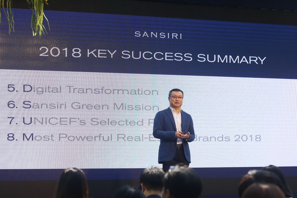 บริษัท แสนสิริ จำกัด (มหาชน) ประกาศให้ปี 2561 เป็นปีแห่งความสำเร็จสูงสุด #SansiriBestYearEver ด้วยยอดขายสูงสุดในรอบ 34 ปี 48,500 ล้านบาทโตขึ้น 25% และยอดขายต่างชาติอันดับหนึ่งของประเทศ 14,000 ล้านบาท สูงขึ้น 51% พร้อมเดินหน้าวิสัยทัศน์ For Greater Well-being สร้างการเติบโตอย่างยั่งยืนตลอดปี 2562ต่อยอดกลยุทธ์ Green & Well-being สู่ทุกโครงการใหม่เพื่อยกระดับคุณภาพชีวิตของผู้อยู่อาศัยทุกมิติ ประกาศมาตรการต่อสู้มลภาวะและฝุ่นละออง PM 2.5 อย่างจริงจัง ด้วยการเปิดตัว “Dust-free House” บ้านปลอดฝุ่นครั้งแรกในประเทศในปีนี้ ตอกย้ำภาพลักษณ์ของแสนสิริในการเป็นผู้นำด้านนวัตกรรมเพื่อการอยู่อาศัยที่ใส่ใจสุขภาพและสิ่งแวดล้อม พร้อมเคาะแผนเปิดตัว 28 โครงการใหม่รวมมูลค่ากว่า 46,600 ล้านบาท ในกรุงเทพฯ และต่างจังหวัด ภายใต้คุณภาพระดับ Best in Class ทุกประเภท ทุกระดับราคา ควบคู่กับการสร้างแบรนด์ให้แข็งแกร่ง ระบุดีมานด์ที่อยู่อาศัยปีนี้ยังมีแต่ลูกค้าจะเลือกแบรนด์ที่เชื่อถือได้มากขึ้น ซึ่งแสนสิริมั่นใจว่าจะมีลูกค้าใหม่ที่เป็น Real-demand มาซื้อโครงการแสนสิริมากขึ้น เหตุเชื่อมั่นในคุณภาพและการดูแล หลังเข้าอยู่อาศัย พร้อมวางเป้าเติบโตแบบยั่งยืนด้วยยอดพรีเซลรวม 3 ปี (2561 – 2564) ทะลุเป้า 1.6 แสนล้าน