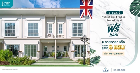 เจ.เอส.พี. พร็อพเพอร์ตี้ จัดโปรโมชั่น ฟรีไม่อั้น ทาวน์โฮมทำเลติวานนท์ "เจ ซิตี้ ติวานนท์-บางกะดี" ทาวน์โฮมใหม่ที่ตอบโจทย์ทุกการใช้ชีวิต เดินทางสะดวก ทำเลติดถนนติวานนท์ ใกล้ทางด่วนบางพูน พร้อมเลือกรับโปรโมชั่นพิเศษ !! ฟรี 6 รายการ* รับส่วนลด 600,000 บาท* 2 - 3 มีนาคม 2562 นี้ ราคาเริ่มต้น 1.99 ล้านบาท*