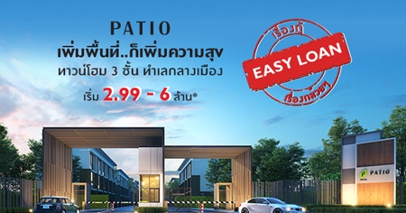 พบโปรโมชั่นใหม่ !!! "เรื่องกู้...เรื่องกล้วยๆ" ทาวน์โฮม 3 ชั้น ทำเลใจกลางเมือง พฤกษา เรียลเอสเตท นำทาวน์โฮม 3 ชั้นพร้อมอยู่ พร้อมโอนจากแบรนด์พาทิโอ เลือกมาจัดโปรโมชั่น มีให้เลือกถึง 8 โครงการ พบกันที่ Sale Gallery พาทิโอ แต่ละโครงการได้แล้ววันนี้ จัดหนักพร้อมกันทั่วกรุงเทพฯ รีบๆ กันหน่อยก่อนหมด พบกันที่สำนักงานขายของทุกโครงการ ราคาเริ่มต้น 2.99 - 6 ล้านบาท*