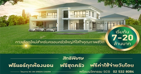 "เอ็นซี ออน กรีน ฌาร์ม" จุดเริ่มต้นของความสุขแห่งการใช้ชีวิต บ้านหรูหลังใหญ่ 5 ห้องนอน 5 ห้องน้ำ พร้อมที่จอดรถ 6 คัน พร้อมนวัตกรรม SCG ทำเลลำลูกกาคลอง 5 ใกล้ทางด่วน ติดสนามกอล์ฟ วิวธรรมชาติ
